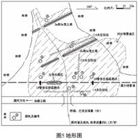 經(jīng)過(guò)現場(chǎng)調查后畫(huà)出該區域的地形圖,如圖5所示。從圖5可知,管道與一條河流交叉。冬季地表先凍結,水流通道受到管道和公路的阻斷,隨著(zhù)凍結過(guò)程的發(fā)展,冰下的水繼續凍結,將表面的冰拱起。水流的持續補充使該過(guò)程快速持續發(fā)展,最后形成冰椎。整個(gè)冰椎的發(fā)展過(guò)程如圖6所示。