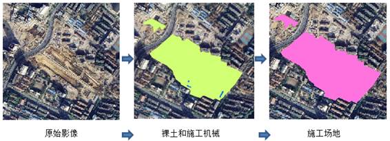 在油氣管道的眾多破壞因素中,項目施工出現的頻率最高,帶來(lái)的破壞性極強,成為油氣管道巡檢的重點(diǎn)。施工場(chǎng)地具備的穩定要素有裸土、板房和機械設備三種,根據其光譜、紋理、形狀及結構等特征可以對油氣管道周邊的施工場(chǎng)地進(jìn)行有效的識別。