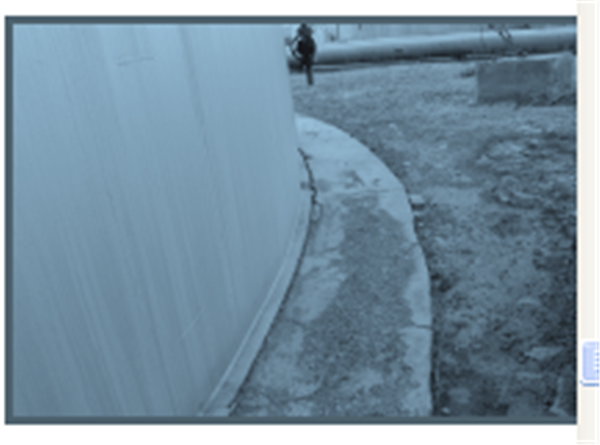 (3)罐體消防管線(xiàn)放水采用立管末端排水方式。而排出來(lái)的水直接排在罐體散水水泥板上, 經(jīng)過(guò)長(cháng)年運行,導致水泥板加速老化,出現裂縫,嚴重的可能導致大罐地基變形,威脅大罐運行安全(圖3)。