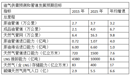 近年來(lái),伴隨著(zhù)我國油氣消費量和進(jìn)口量的增長(cháng),油氣管網(wǎng)規模不斷擴大,建設和運營(yíng)水平大幅提升,基本適應經(jīng)濟社會(huì )發(fā)展對生產(chǎn)消費、資源輸送的要求;A設施網(wǎng)絡(luò )基本成型。西部、漠河—大慶、日照—儀征—長(cháng)嶺、寧波—上!暇┑仍凸艿,蘭州—鄭州—長(cháng)沙、蘭州—成都—重慶、魯皖、西部、西南成品油管道,以及西氣東輸、陜京、川氣東送天然氣管道等一批長(cháng)距離、大輸量的主干管道陸續建成,聯(lián)絡(luò )線(xiàn)和區域網(wǎng)絡(luò )不斷完善。2015年底,我國原油、成品油、天然氣主干管道里程分別達到2.7、2.1和6.4萬(wàn)公里。