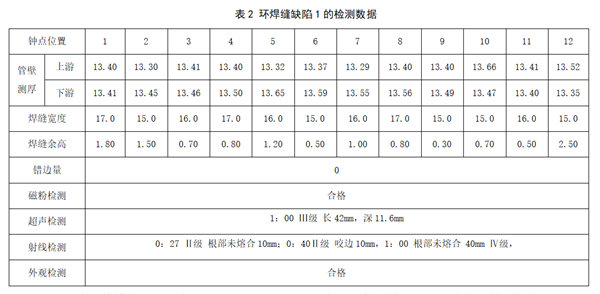 2 環(huán)焊縫缺陷實(shí)例分析與處置