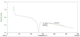 環(huán)氧粉末在固化后與鋼管表面是通過(guò)化學(xué)鍵聯(lián)結的,其抗剝離性能很強,如果環(huán)氧粉末固化不完全,將直接影響到防腐層的質(zhì)量。標準GB/T23257-2009規定環(huán)氧粉末固化度應≥95%。對熔結環(huán)氧層進(jìn)行差示掃描測試(DSC),計算熔結環(huán)氧層的固化度,如圖5和表1所示。
