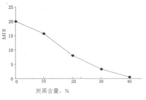 圖1 炭黑含量對樹(shù)脂MFR的影響