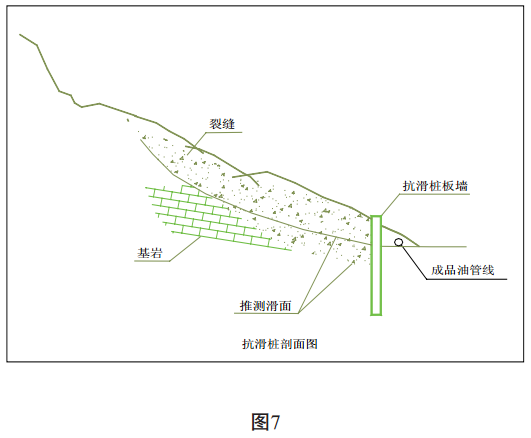 根據滑坡的危害結合長(cháng)輸管道的特點(diǎn), 經(jīng)過(guò)實(shí)地勘察了解現場(chǎng)情況后, 制定治理方案, 由設計部門(mén)進(jìn)行圖紙設計, 由施工單位進(jìn)行施工。(見(jiàn)圖 6、 圖 7)