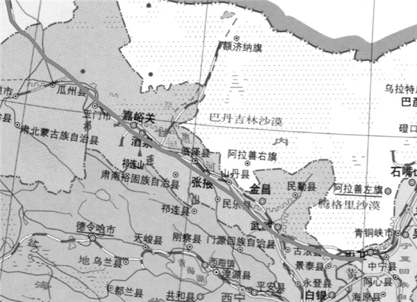 中石化新疆煤制氣外輸管道工程(新粵浙管道)甘肅段走向示意圖