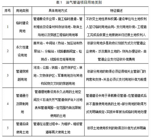 1 油氣管道項目用地的種類(lèi)和特點(diǎn)
