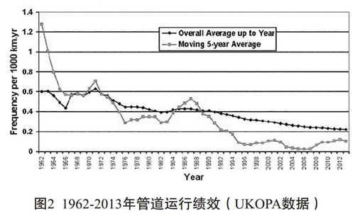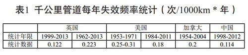 英國HES當局發(fā)布的全國管道行業(yè)失效數據如圖 2所示,與其他國家比較(見(jiàn)表1),處于較好的水平。英國管道的建設年代均早于1993年,因此從側面反映管道的運行績(jì)效是值得參考與借鑒的。