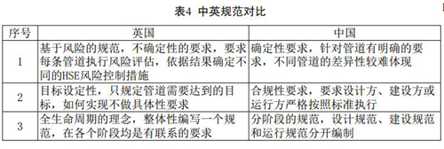 通過(guò)以上對英國天然氣管道行業(yè)的規范體系介紹,對比國內現行的規范,可以發(fā)現主要的區別如表4所示。