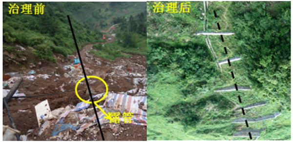 坡面侵蝕和沿程坍滑體是泥石流的主要物源?刂坪 “物源”可以降低泥石流的規模。采取支擋和排導工程等措施對分布于溝道沿線(xiàn)、源頭及兩側的坍滑體進(jìn)行治理,避免其轉化為泥石流物源。