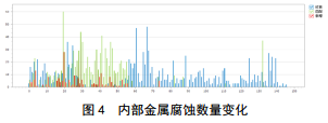 2011年和2015年外部金屬腐蝕都覆蓋全線(xiàn),但2015年缺陷數量比2011年增加了1 959個(gè),說(shuō)明外部腐蝕數量發(fā)展較快(圖 5)。