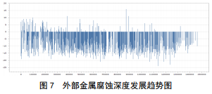通常,缺陷的深度、長(cháng)度應為正增長(cháng),但二次內檢測金屬腐蝕缺陷的深度、長(cháng)度都不符合此規律,應為二個(gè)檢測商的不同識別技術(shù)導致。因此本次內檢測數據比對無(wú)法從缺陷尺寸上進(jìn)行腐蝕增長(cháng)率定量分析。