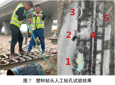 使用塑料鉆頭人工手持電機在管道上方鉆孔。試驗結果: