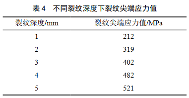 由表 1可知,當裂紋深度、長(cháng)度、寬度一定時(shí),不同形狀的裂紋尖端應力變化不大。
