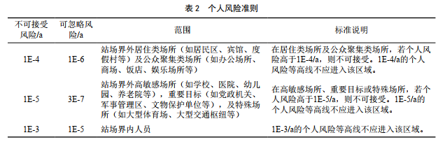 依據Q/SY 1594―2013,確定個(gè)人風(fēng)險容許標準如表 2所示。