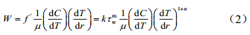 黃啟玉模型以分子擴散機理為基礎,同時(shí)考慮到了紊流狀態(tài)下流體對蠟沉積層的剪切作用,是一種具有普適性的蠟沉積動(dòng)力學(xué)模型。他認為剪切彌散對蠟沉積的影響基本可以忽略。該模型中提出了“蠟沉積傾向系數”的概念,該系數考慮了管壁剪切應力和管道徑向溫度梯度的影響。同時(shí)其他不確定因素,如蠟分子擴散系數等,一并計入系數中,簡(jiǎn)化了計算步驟。蠟沉積傾向系數的表達式為:
