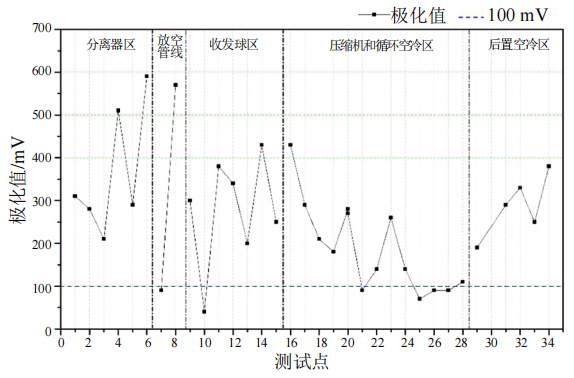 圖 6 治理措施實(shí)施后站場(chǎng)埋地管道極化值測試結果