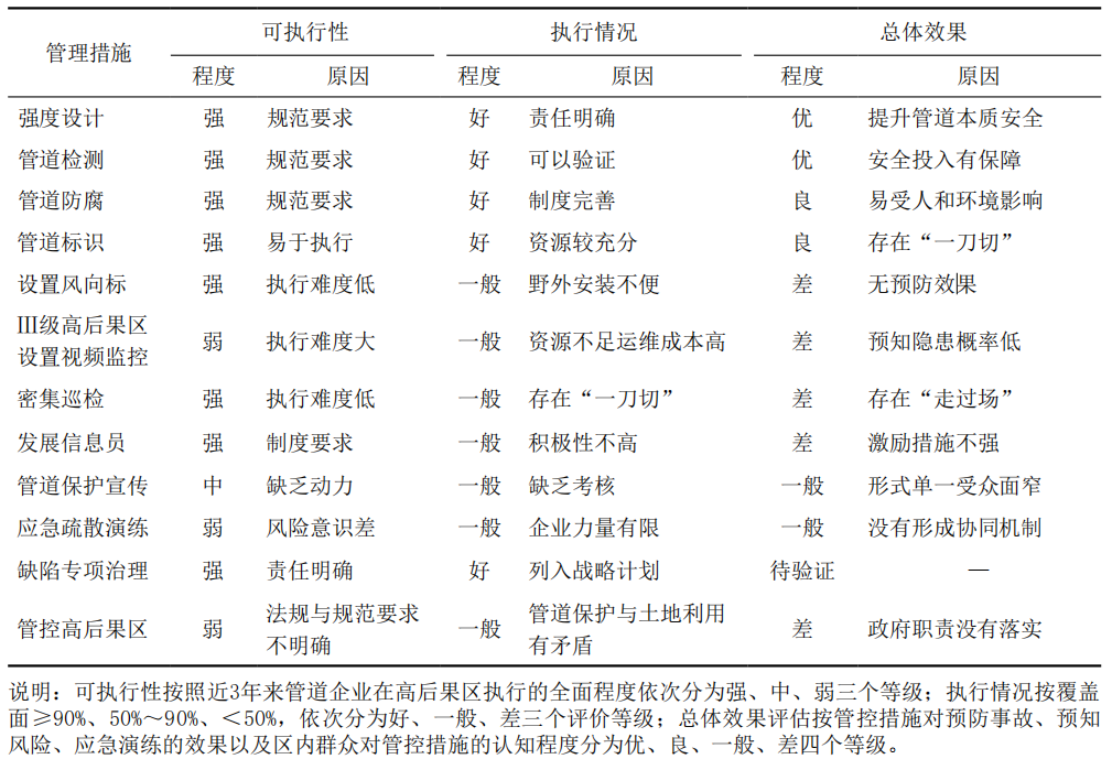 表 1 管道高后果區管控措施及其效果分析評估表