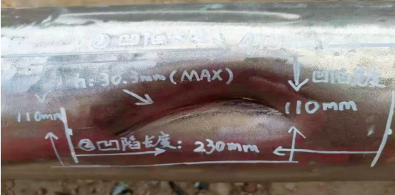 (3)實(shí)施缺陷換管修復。為有效消除管道本體安全隱患,同時(shí)為后續清管、檢測創(chuàng )造有利條件,2021年9月完成對4處變形點(diǎn)的換管修復(圖 4)。
