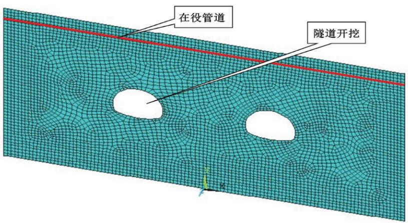 由于隧道幾何形狀的不均勻性和隧道襯砌作用,很難通過(guò)解析得到隧道及地表沉降的計算值,有限元計算工具則提供了有效途徑。如ANSYS軟件既能模擬土體和管道的變形情況也能計算得知管道的應力應變狀態(tài)[5]。