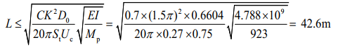 實(shí)際工程中,fp≥10fs,可以認為不會(huì )發(fā)生渦激共振[7],即為海底管道臨界固有頻率值。由此得出海底管道臨界懸跨長(cháng)度公式(5)[8-9]: