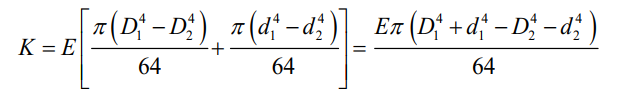式中D1為外管外徑,m;D2為外管內徑,m;d1為內管外徑,m;d2為內管內徑,m; 假設簡(jiǎn)化后的單層管道內徑為r,簡(jiǎn)化后的管道內壁厚為δ,簡(jiǎn)化前后外徑和總剛度不變,則: