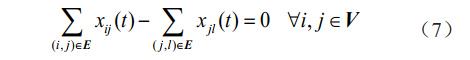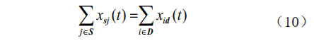 式中,xij( t )表示 t 時(shí)刻,第 i 節點(diǎn)到第 j 節點(diǎn)的流量,104 Nm3/day;(i, j)和( j , l )分別表示節點(diǎn) i 到節點(diǎn) j 之間的管道和節點(diǎn) j 到節點(diǎn) l 之間的管道。