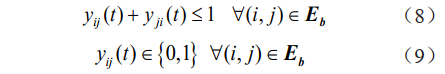 式中,Eb表示雙向管道的集合,yij( t )為控制 t 時(shí)刻雙向管道流向的二元決策變量。