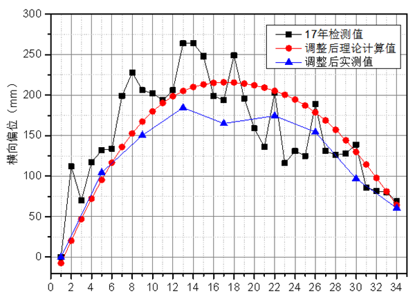 圖 6 線(xiàn)形調整后主梁橫向偏位情況