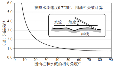 近年來(lái),水上溢油事件時(shí)有發(fā)生,如果溢油發(fā)生在激流河道或水域,在水流和風(fēng)的作用下將會(huì )迅速擴散和漂移,如果得不到及時(shí)圍控和回收,將會(huì )對大范圍水域和岸線(xiàn)造成污染。水域中溢油的綜合運動(dòng)速度,取決于流水表面流速(一般采用距離水面0.5 m處的流速)和現場(chǎng)風(fēng)速沿水流方向的作用分量。當溢油的綜合運動(dòng)速度大于1節(0.51 m/s)時(shí),溢油會(huì )從圍油欄的底部逃逸,則圍控和回收將是很困難的事情。為此需要研究激流中圍油欄布設技術(shù)和方法,首先調查清楚河流地貌和河水流動(dòng)情況,選擇水流較緩慢的區域布設圍油欄。在水流速度較快的水域,通過(guò)改變圍油欄的布設形式和布設角度,減小激流在圍油欄垂直方向上的相對速度,以便提高圍控效率,阻止其進(jìn)一步擴散和漂移。