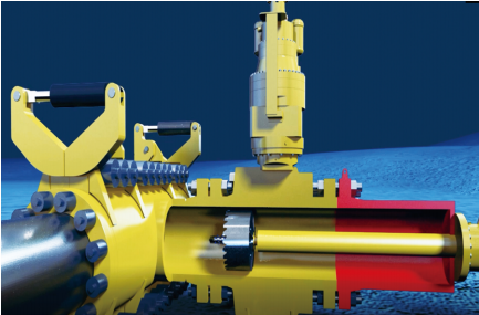 海底管道易受海水腐蝕、微生物腐蝕、海流海浪沖擊、地震、船錨剮蹭等因素的影響,造成運行能力降低甚至發(fā)生本體失效[1-5]。為了不影響正常輸送,需要在水下管道上安裝專(zhuān)用機械三通,在閥門(mén)和三通組合成的局部密閉空間內對管道進(jìn)行帶壓水平開(kāi)孔和安裝塞柄,實(shí)現不停輸連接新建管線(xiàn)的目的(圖 1)。我國自主開(kāi)發(fā)的海底管道開(kāi)孔機能夠通過(guò)遠程控制系統進(jìn)行海底在役油氣管道水平開(kāi)孔作業(yè),通過(guò)系統計算與機械數據讀取雙保險,確保了海底管道開(kāi)孔的準確性。