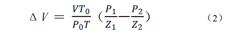 管網(wǎng)儲氣變化量ΔV與管網(wǎng)管段總容積、天然氣溫度、壓力和壓縮因子有關(guān)系,其關(guān)系式為: