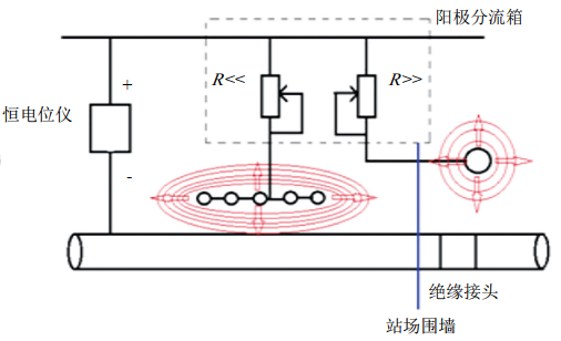 (1)根據SYT 6964―2013《石油天然氣站場(chǎng)陰極保護技術(shù)規范》,在泵棚區、閥組區等欠保護區域增設淺埋陽(yáng)極,并通過(guò)陽(yáng)極分流箱并入現運行的深井陽(yáng)極。
