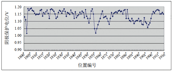 從圖 6可以看出,連通后兩條并行管道陰極保護電位均處于﹣0.85 VCSE~﹣1.20 VCSE之間,改進(jìn)措施有效,且屏蔽體管線(xiàn)2的陰極保護電位處于有效保護狀態(tài),無(wú)負面影響。