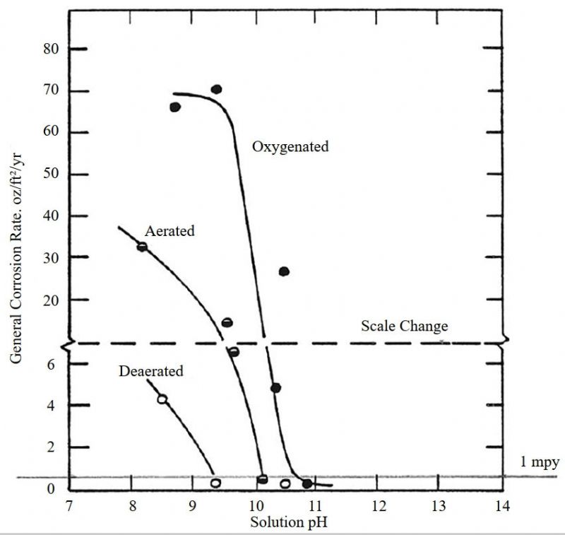 二是管道穿越墻體界面富氧環(huán)境導致腐蝕速率加快。管體穿越墻體界面處環(huán)境的氧含量要高于土壤側,同時(shí)界面位置處受到排污暗渠內污水、倒灌海水等影響濕度高,由于O2為強去極化劑,同時(shí)又有水分存在,腐蝕速率會(huì )大大加快, O2含量對金屬腐蝕電位和腐蝕速率的影響如圖 7所示。