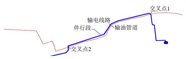 圖 1 輸電線(xiàn)路與管道交叉伴行位置