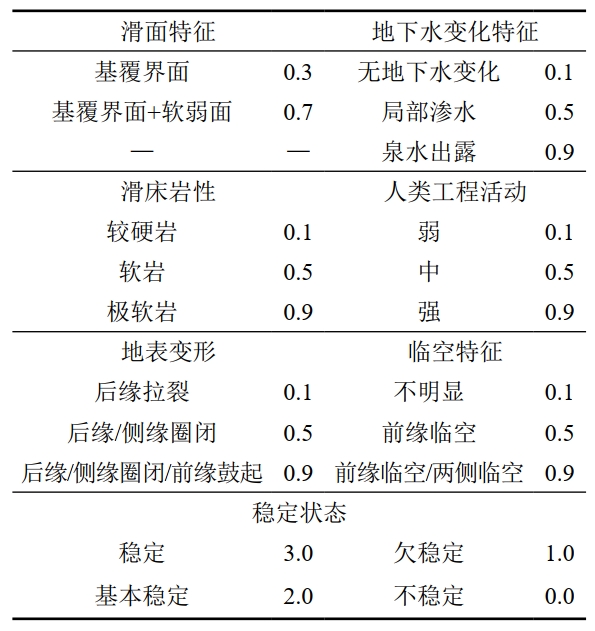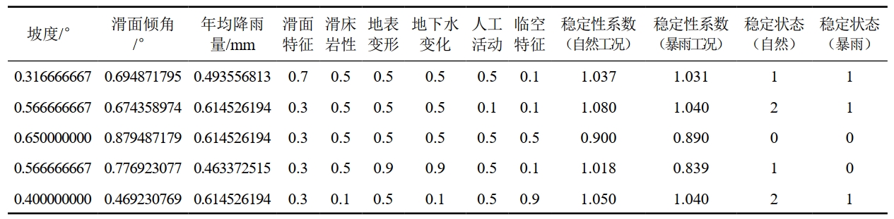 表 1 滑坡穩定性評價(jià)模型原始數據樣本