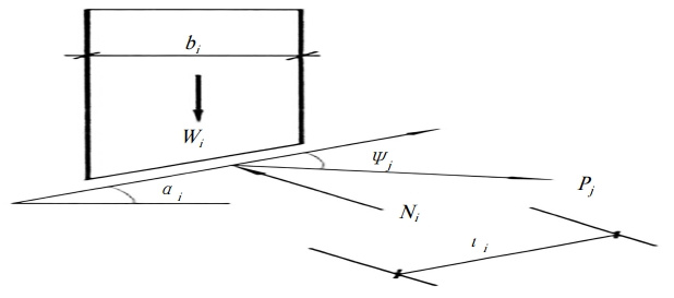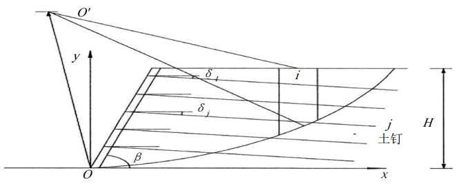 式中,FS為滑動(dòng)面的安全系數,n為土條數,Ci為第 i 條塊的粘聚力,ψi 為第 i 條塊的內摩擦角,bi為第 i 條塊底面水平方向上寬度,βi為第 i 條塊底面與水平面間的夾角,Wi為第 i 條塊重力,Li為條塊底面長(cháng),Sh為土釘的橫向間距,δj為第 j 排土釘與水平面間的夾角,Pj為第 j 排土釘提供的抗拔力,(j =1,2,...,n),Ψj 為第 j 排土釘與滑動(dòng)面切線(xiàn)間的傾角,Ψj =ψi+δj 。
