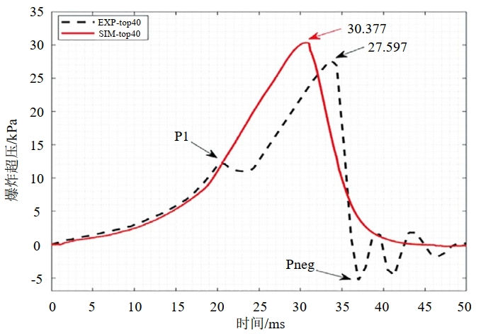 圖 1 實(shí)驗超壓與模擬超壓的比較