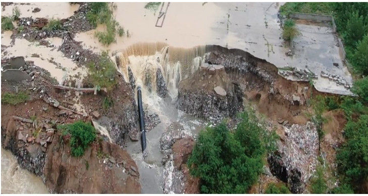 2021年鄭州“7·20”特大暴雨引發(fā)了西一線(xiàn)管道388處水毀災害,出現管道裸露、懸空等大型災害點(diǎn)9處,其中位于鄭州市中原區的呂家河穿越段災害最為嚴重。