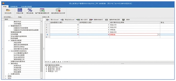 (3)風(fēng)險評價(jià)與隱患識別。主要采用半定量評價(jià)標準開(kāi)展風(fēng)險評價(jià),根據所選管段屬性和周邊環(huán)境情況,將管段劃分為不同單元,結合對應的風(fēng)險評價(jià)指標進(jìn)行打分,依據風(fēng)險評分計算模型得出各單元管段相對風(fēng)險值。通過(guò)在系統內建立風(fēng)險評價(jià)模型,實(shí)現逐條管線(xiàn)在線(xiàn)精準評價(jià)(圖 3),使以往操作復雜的風(fēng)險評價(jià)方法得以在線(xiàn)大量實(shí)踐應用,在系統內生成快捷、便利的自動(dòng)測評結果展示。評價(jià)完成后GIS地圖直觀(guān)生成全公司風(fēng)險展示圖(圖 4)。同時(shí)總結梳理管道典型隱患/失效類(lèi)型,制定隱患分級判定企業(yè)標準,推動(dòng)風(fēng)險隱患科學(xué)識別,并開(kāi)發(fā)系統模型實(shí)施線(xiàn)上評價(jià)。